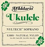 D'Addario EJ88S, D'Addario EJ88S sets are designed for use with all soprano ukuleles. Each string within this set is made from our exclusive Nyltech material and optimized for GCEA tuning.Developed in cooperation with Aquila, D'Addario Nyltech strings are an exclusive combination of materials designed to deliver an optimal combination of warm, yet punchy tone, comfortable playability, precise intonation and tuning stability not found in other ukulele strings. D'Addario, the world's largest manufacturer of musical instrument strings, is known as The Players Choice with a reputation for unsurpassed quality and consistency. D'Addario's innovative packaging reduces waste and provides protection from corrosion. All D'Addario strings are manufactured in the U.S.A. using proprietary, digitally controlled, state-of-the-art machinery for unmatched performance, set after set. ...